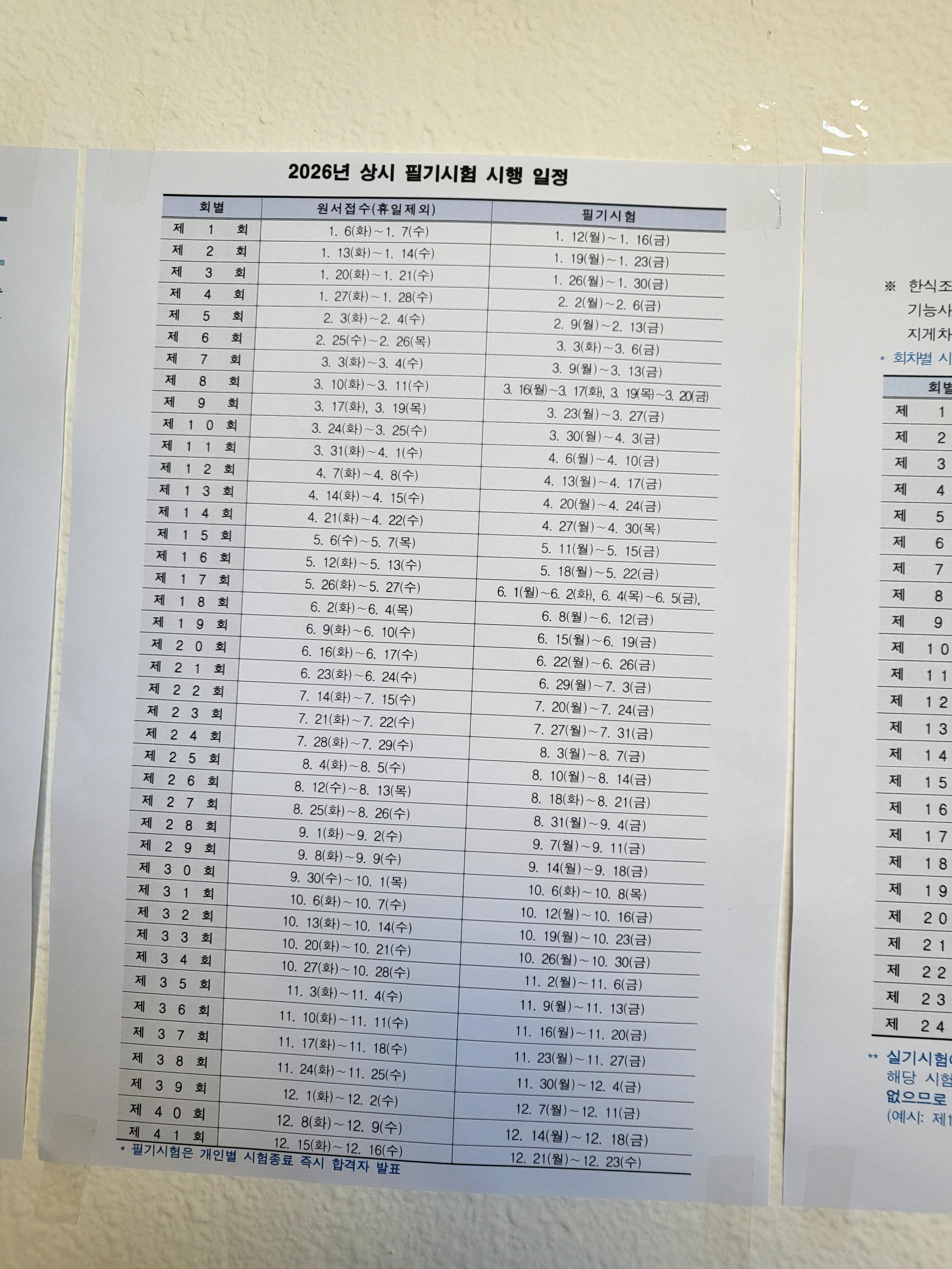 필기시험일정이다