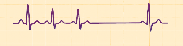 초반에는 정상적인 P파, QRS파, T파가 나타나다가 갑자기 일정 시간 동안 전기적 활동이 멈추며 평평한 직선이 이어지는 모습이 특징
