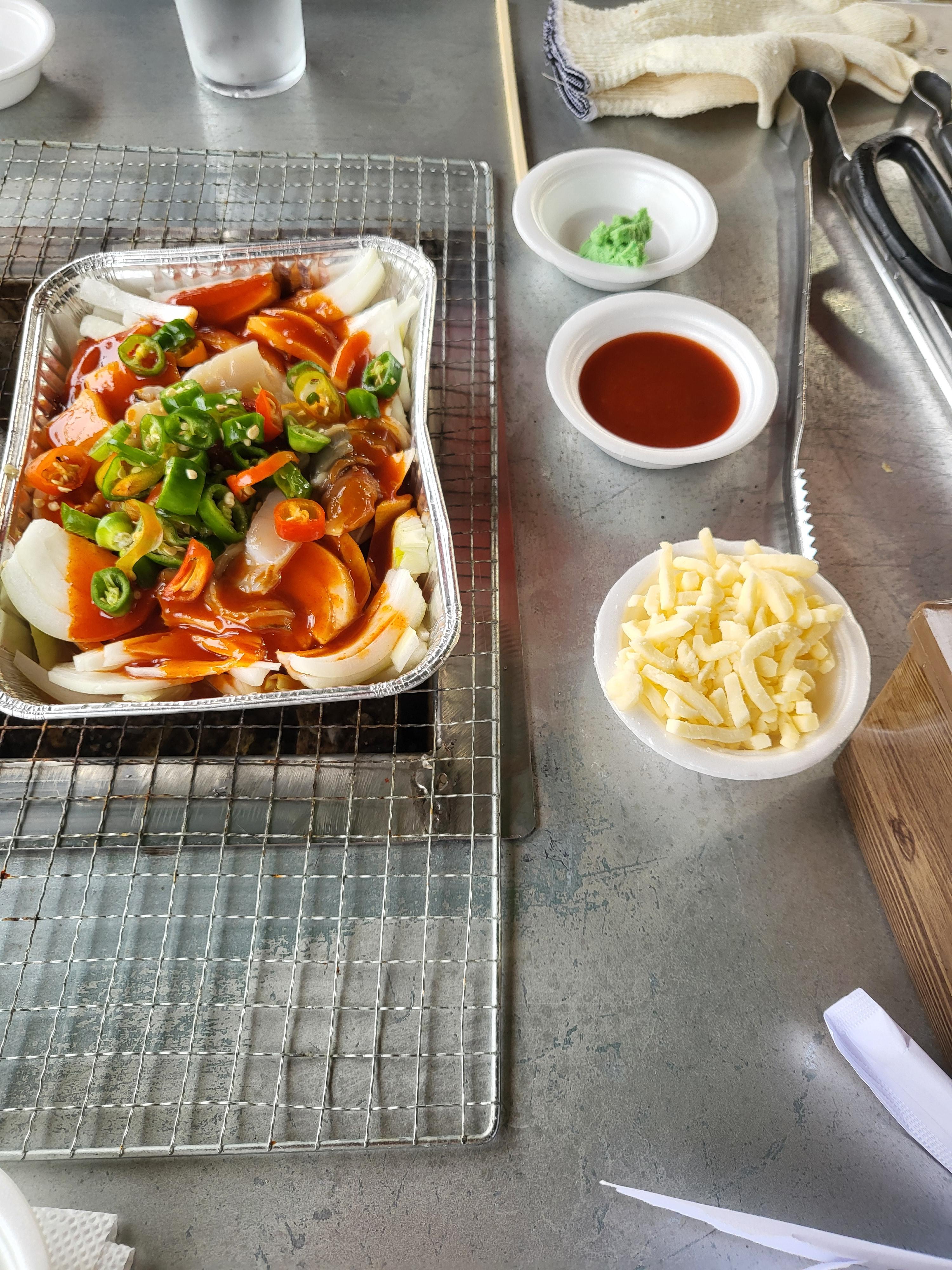 간장, 겨자, 양파, 고추, 쌈장, 치즈 등