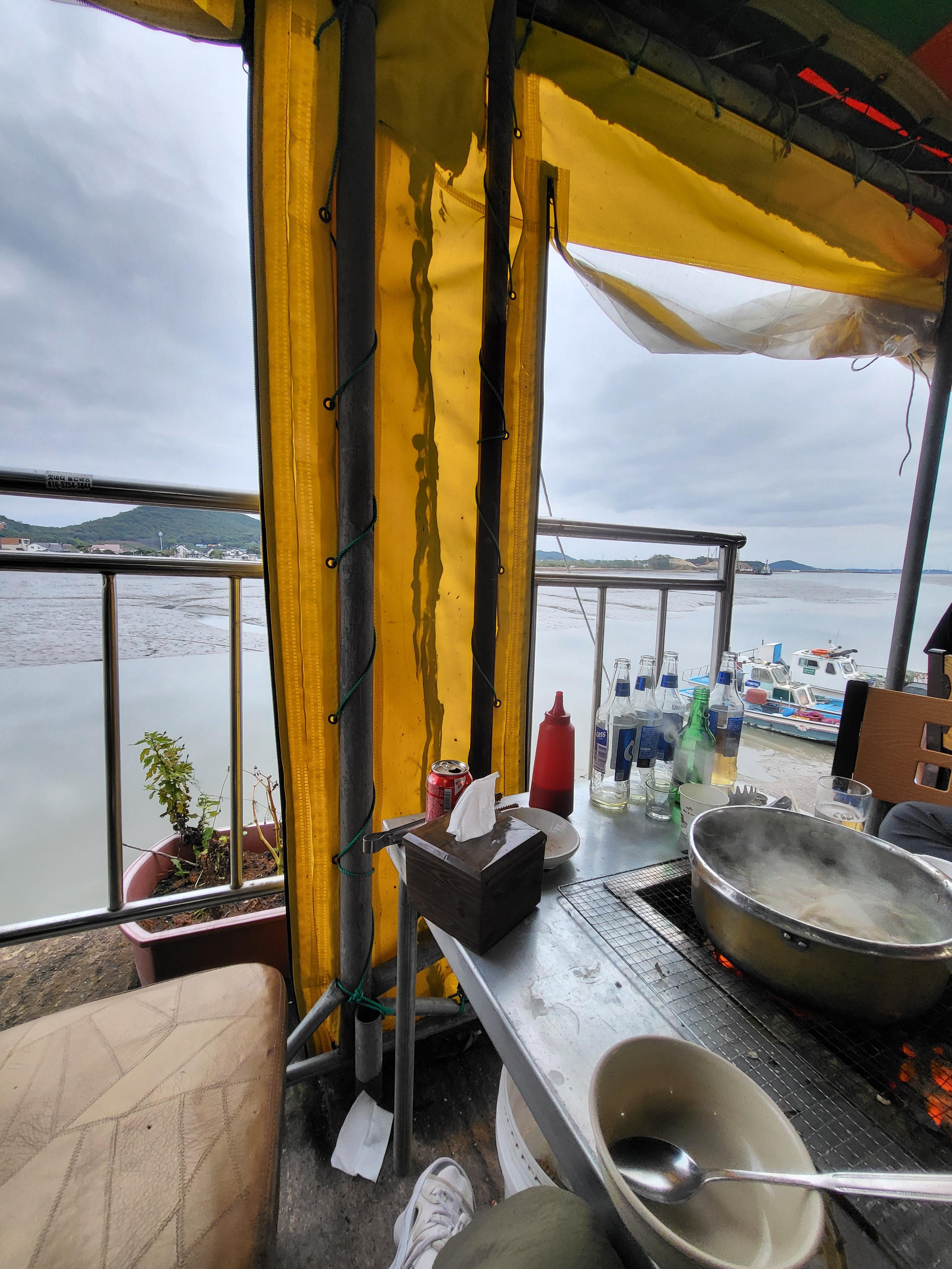 갯벌에서 바다한가운데서 먹는 기분