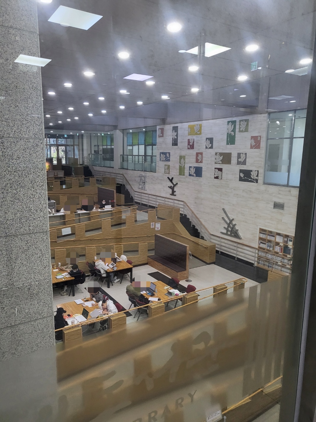 2층 열람실의 모습, 다 칸막이 책상으로 되어있다