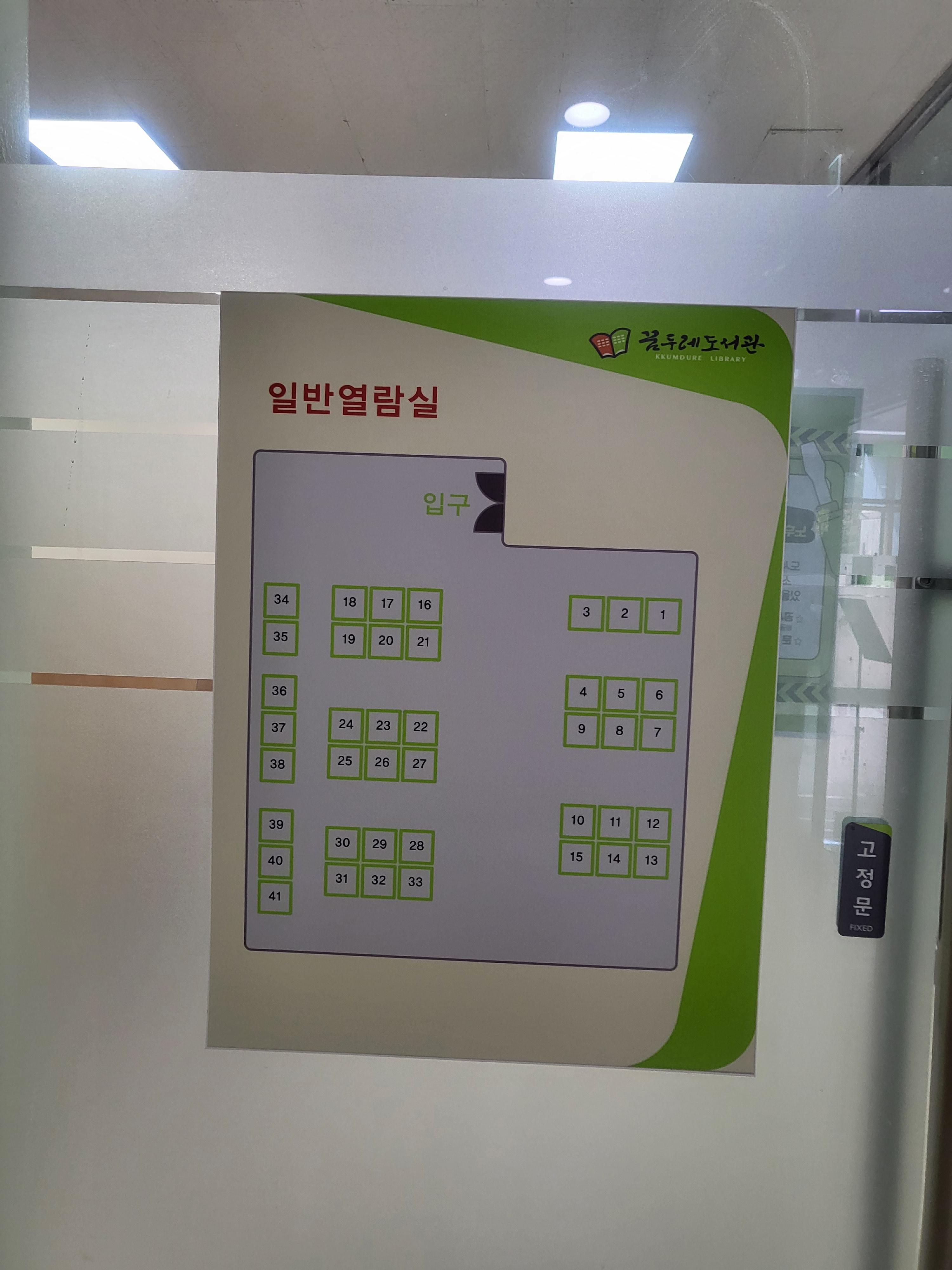 일반 열람실의 좌석 배치도