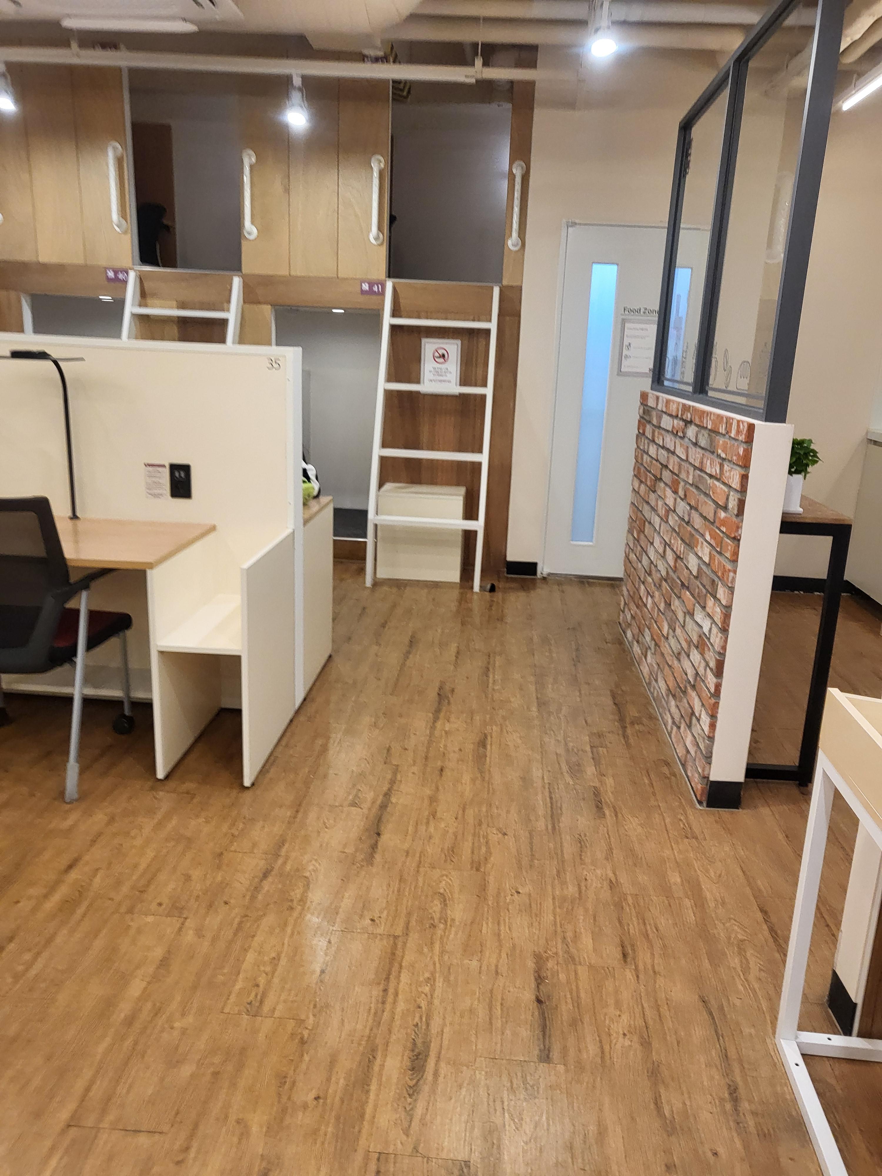 2층으로 올라가서 할 수 있는 공간도 있고 칸막이책상도 있다